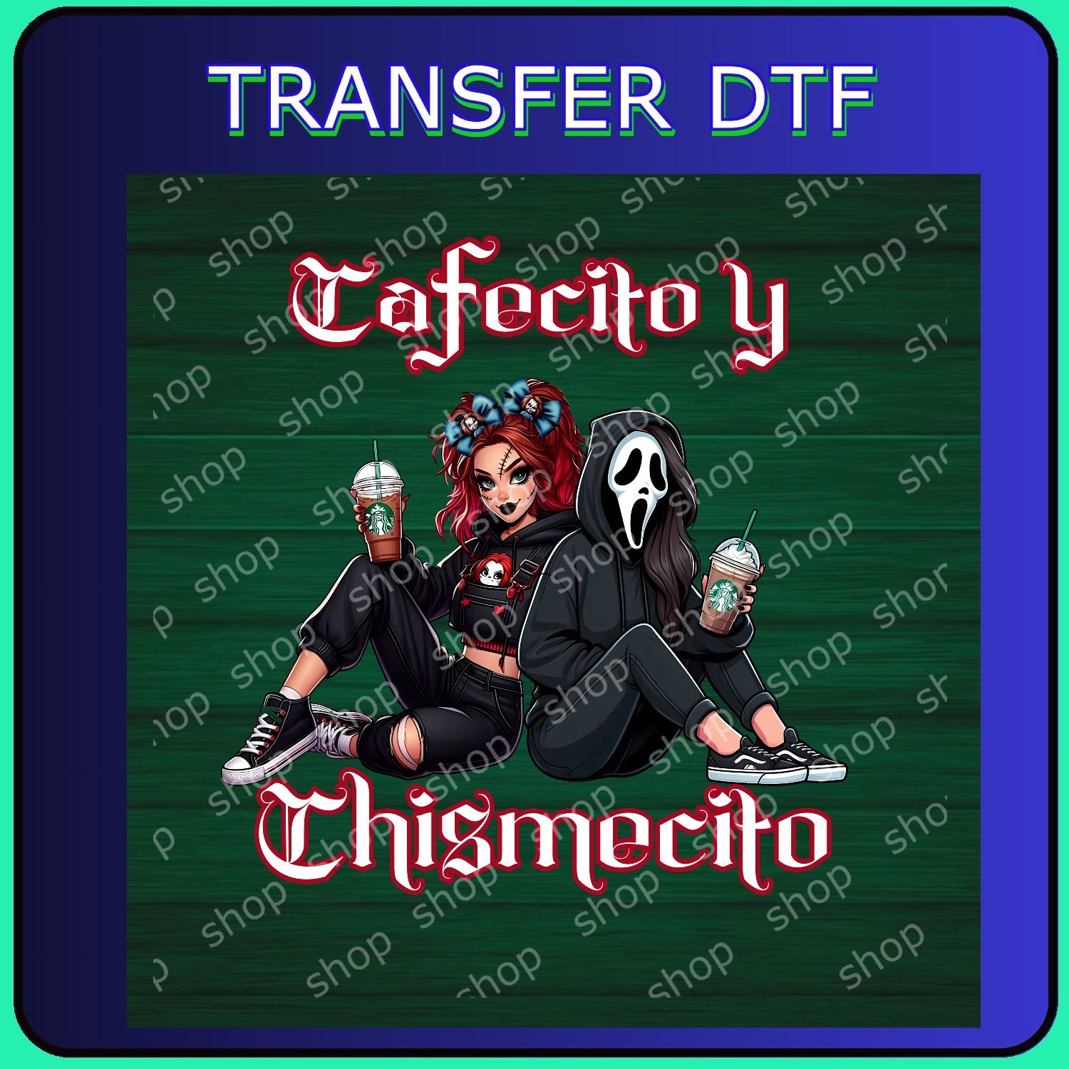 Transfer DTF de alta calidad con diseño divertido y moderno de dos chicas estilo Halloween, disfrutando un café y buen chisme 👻☕. Ideal para darle un toque fresco y original a tus prendas textiles. Disponible en distintos tamaños; si deseas más pequeño o más grande, comunícate conmigo.