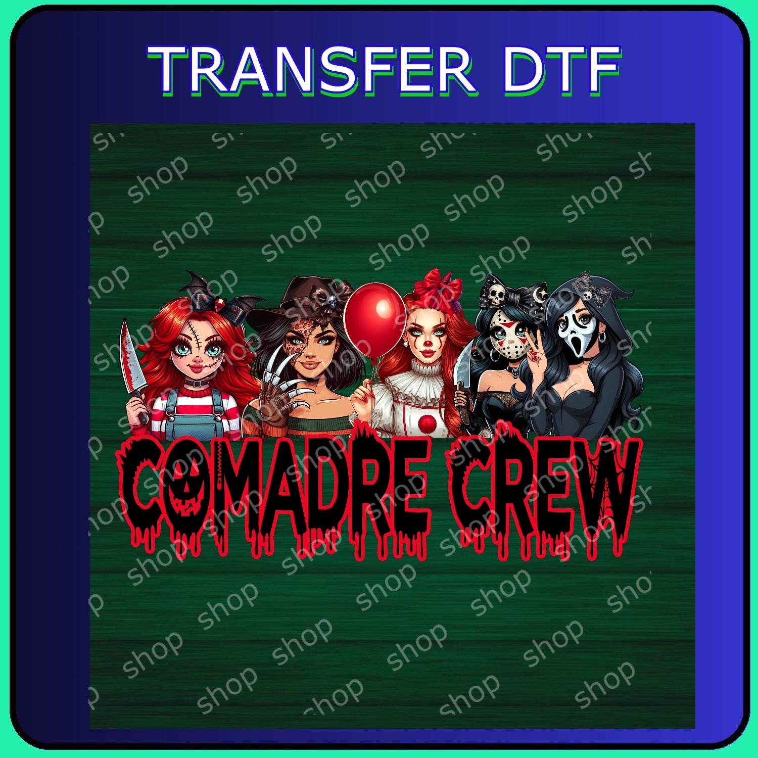 Transfer DTF de alta calidad con diseño de grupo femenino “Comadre Crew”, inspirado en personajes icónicos de terror con un estilo moderno y atrevido 🔪🎈👻. Perfecto para prendas textiles que combinan moda urbana y Halloween. Disponible en distintos tamaños; si deseas más pequeño o más grande, comunícate conmigo.